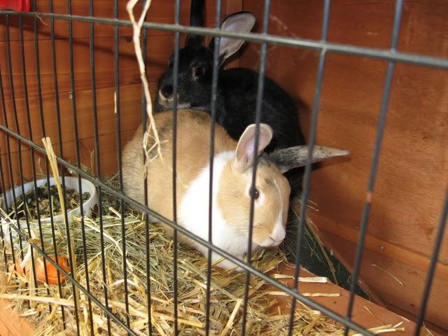 Sinds afgelopen jaar hebben wij 2 konijnen. Bessie en Stampertje. Bessie is de "rode" en stampertje is de zwarte.